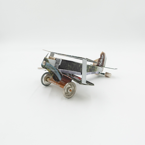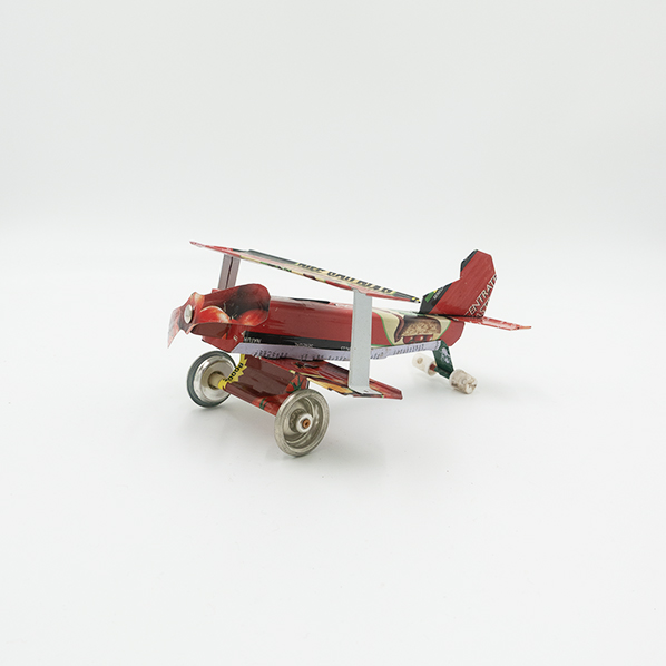 Dit handgemaakte vliegtuigje is gemaakt van gerecycled blik en met de hand gevormd door ambachtslieden in Senegal. Door het gebruik van hergebruikte materialen en het handwerk heeft elk vliegtuigje een eigen karakter, met kleine variaties in vorm en details.